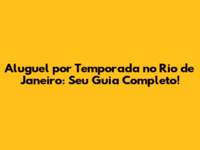 Aluguel Por Temporada No Rio: Seu Guia Completo!