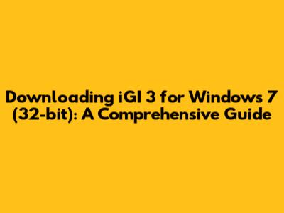Downloading IGI 3 For Windows 7 (32-bit): A Comprehensive Guide