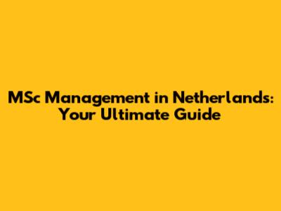 MSc Management In Netherlands: Your Ultimate Guide