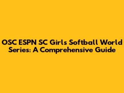 OSC ESPN SC Girls Softball World Series: A Comprehensive Guide