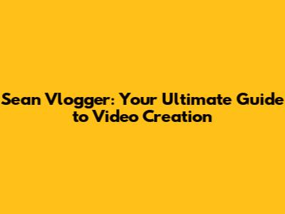 Sean Vlogger: Your Ultimate Guide To Video Creation