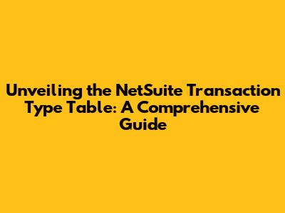 Unveiling The NetSuite Transaction Type Table: A Comprehensive Guide