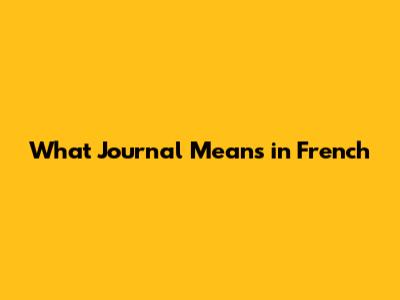 What 'Journal' Means In French